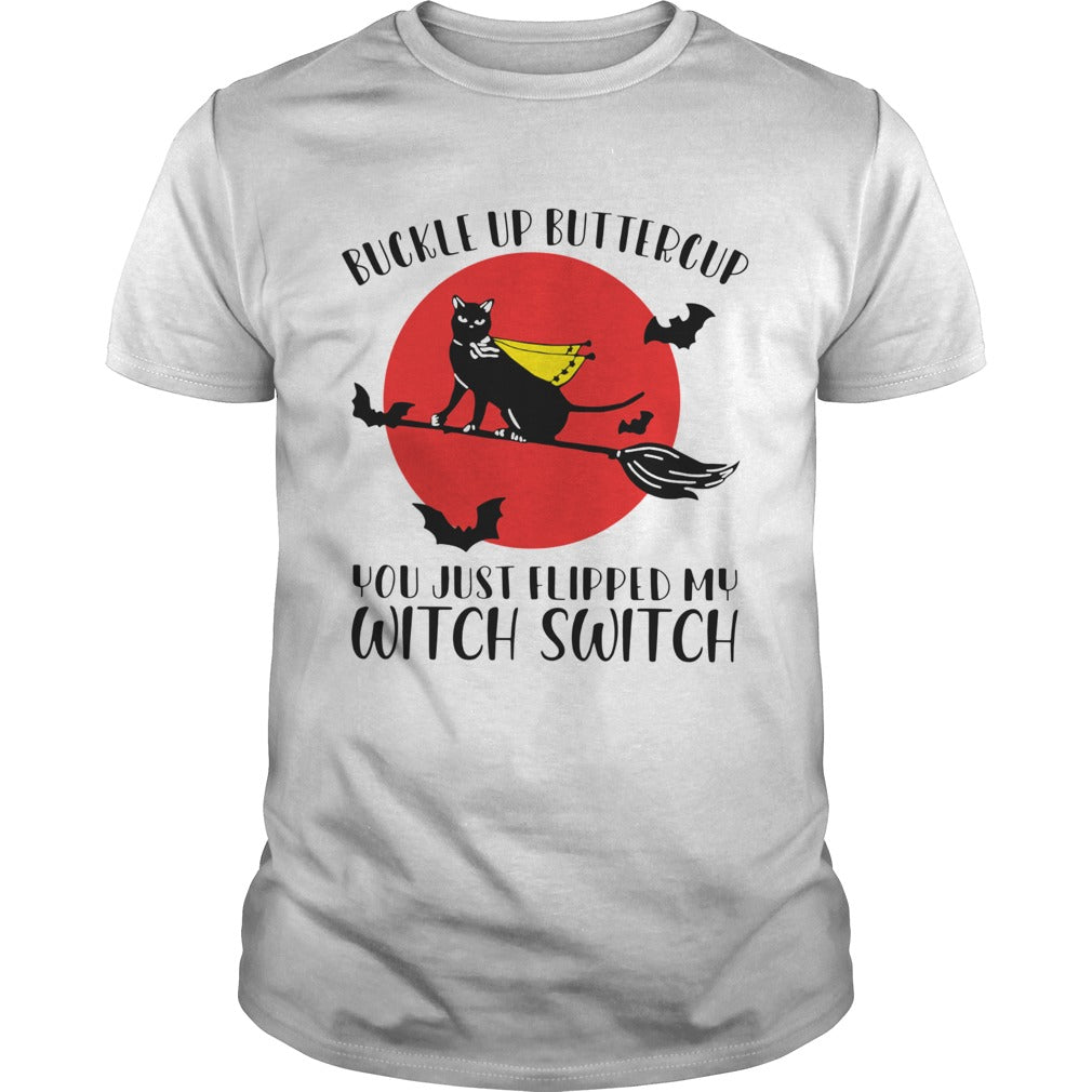 Black cat buckle up buttercup you just flipped my witch switch moon shirt