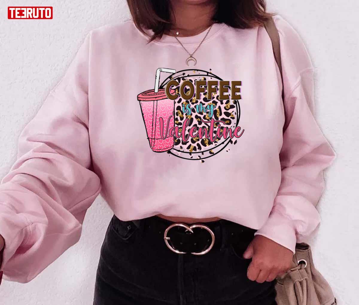 Coffee Is My Valentine Pink Leopard Lovers Unisex Sweatshirt