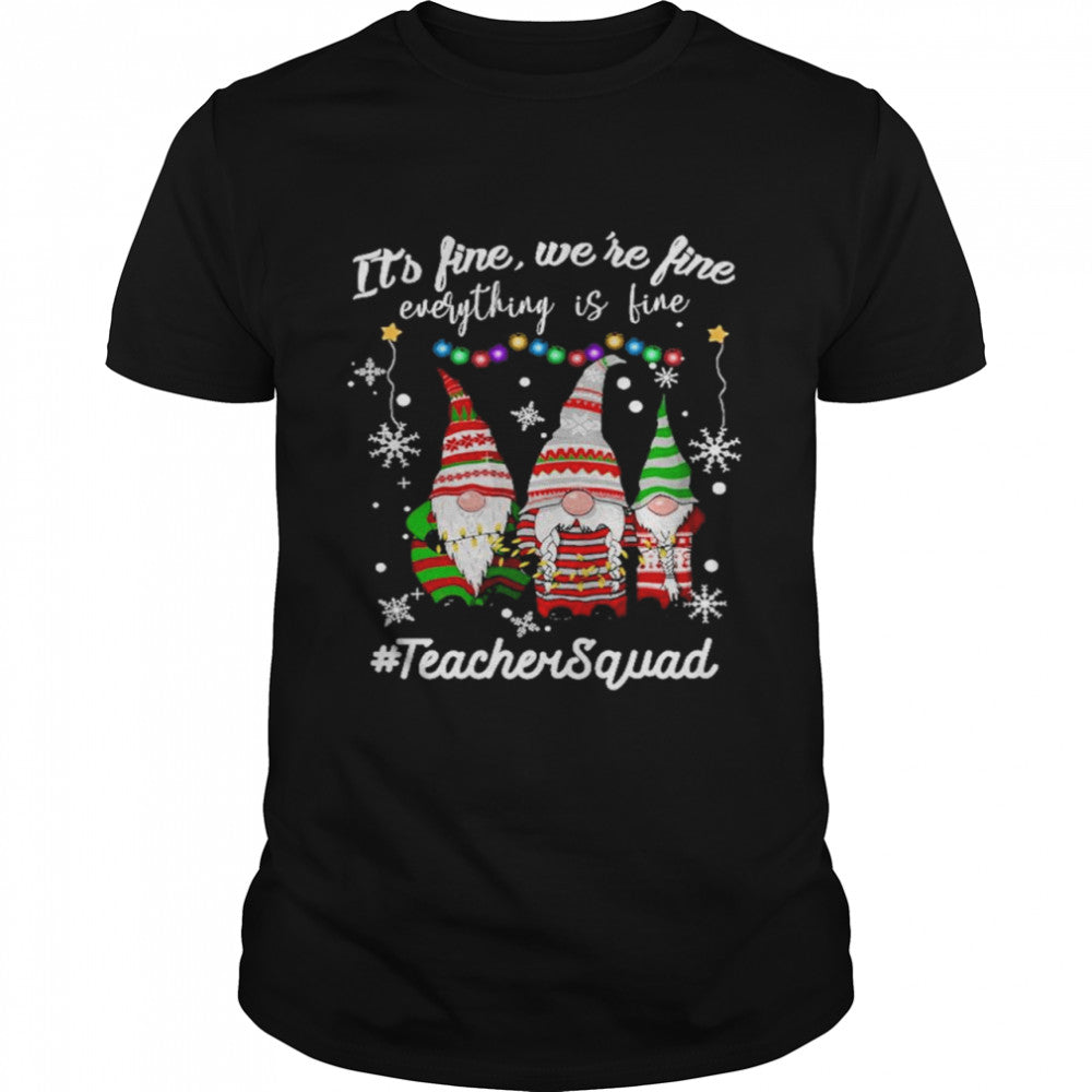 Gnomes Its fine were fine everything is fine Teacher Squad Christmas shirt