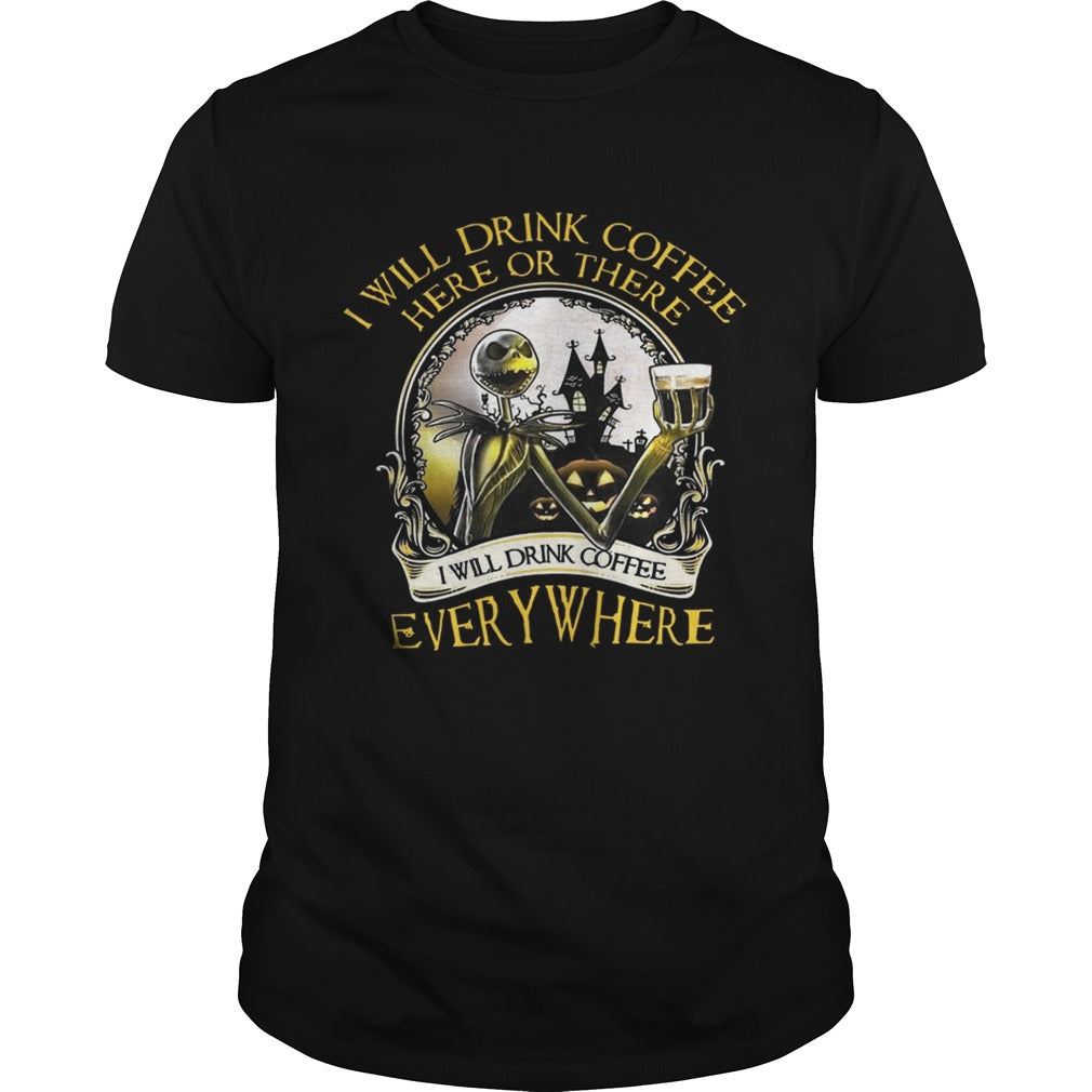Jack Skellington I Will Drink Coffee Here Or There Everywhere Shirt