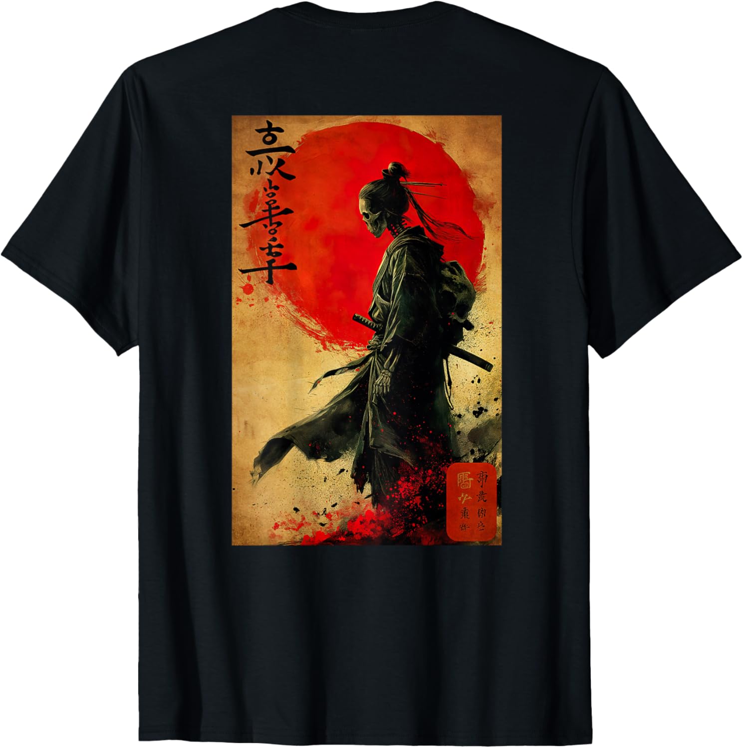 Japanese Woodblock art of a Samurai Skeleton Japan (BACK)