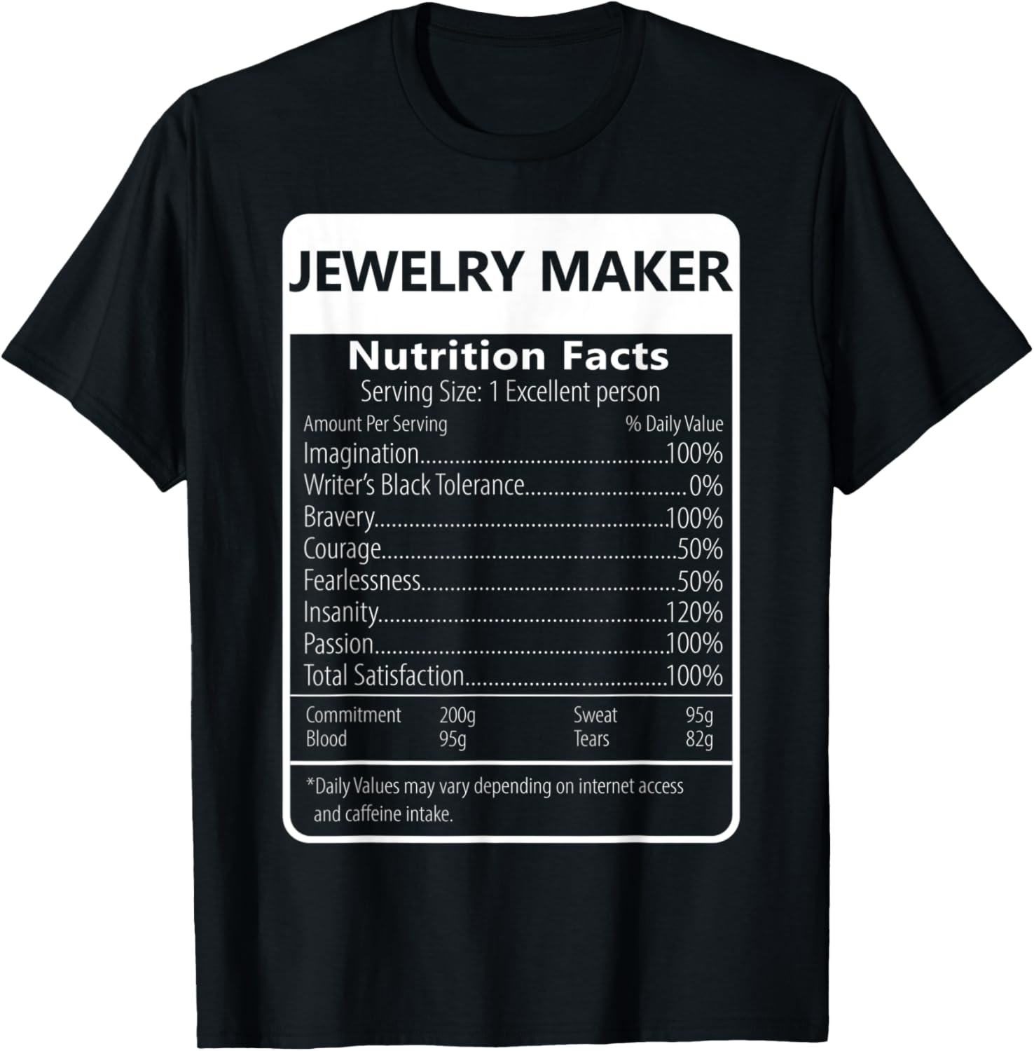 Jewelry Maker Nutrition Facts Sarcastic Graphic