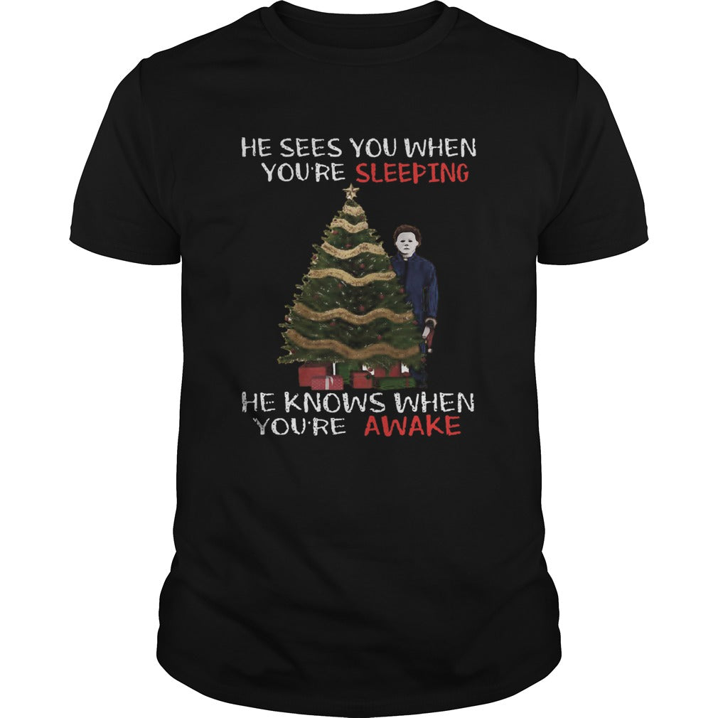 Michael Myers Christmas Tree He Knows When Youre Awake Christmas shirt
