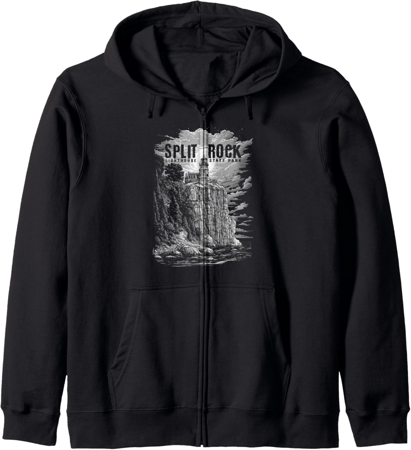 Moon Night Classic Art Split Rock Lighthouse Minnesota Zip Hoodie