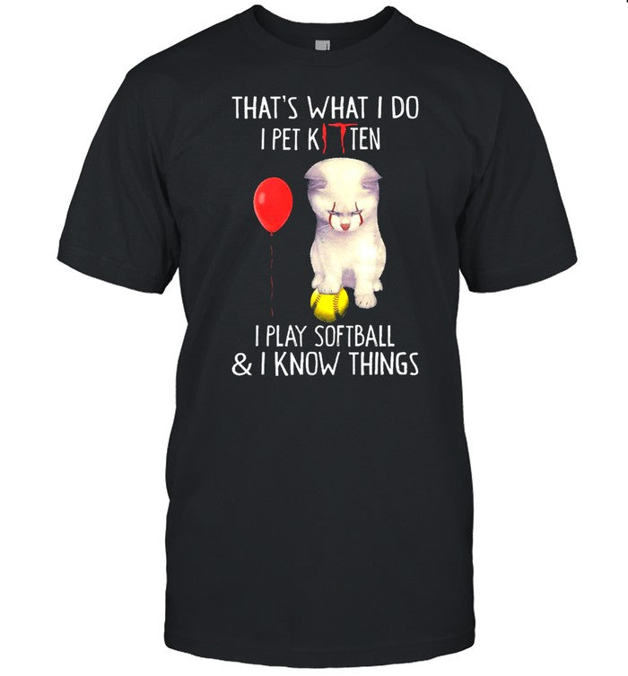 Pennywise Kitten That’s What I Do I Pet Kitten I Play Softball And I Know Things Shirt