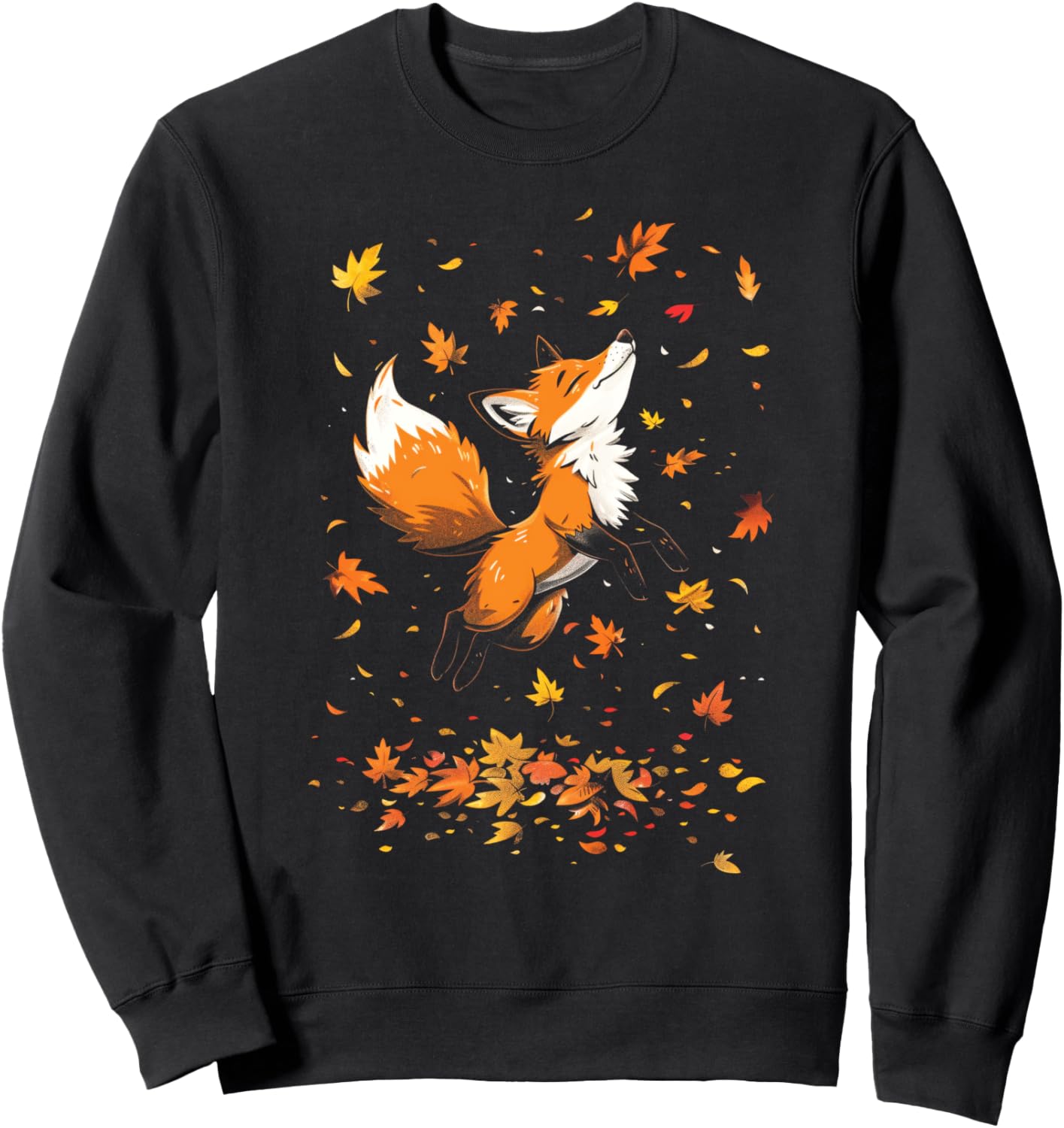 Red Fox Cute Cartoon Fall Jumping Autumn leaves Sweatshirt