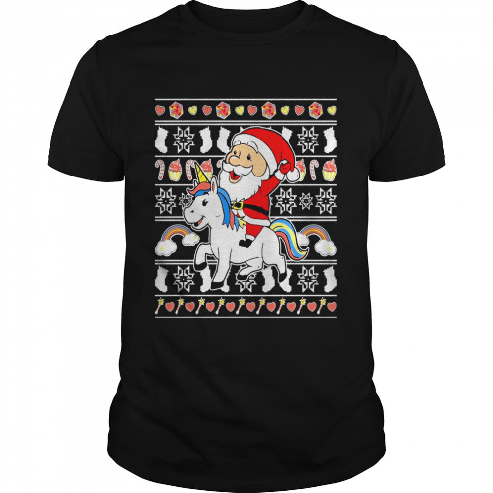 Santa Claus Riding Unicorn Ugly Christmas Shirt