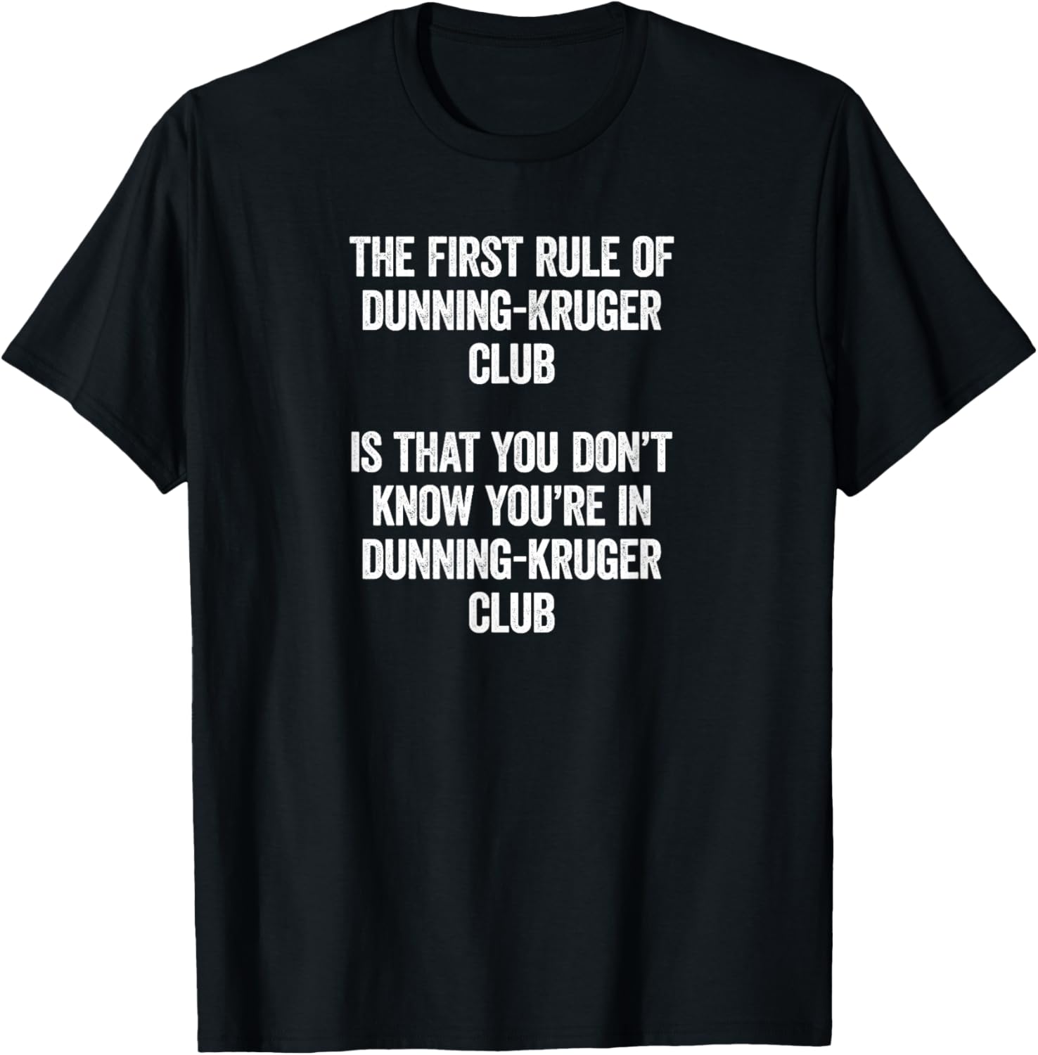 Tripping Yarns Dunning Kruger Club T-Shirt, Black, Small, Unisex, Short Sleeve, Classic Fit, Distressed Graphic Print, Psychology, Sociology, Politics Humor
