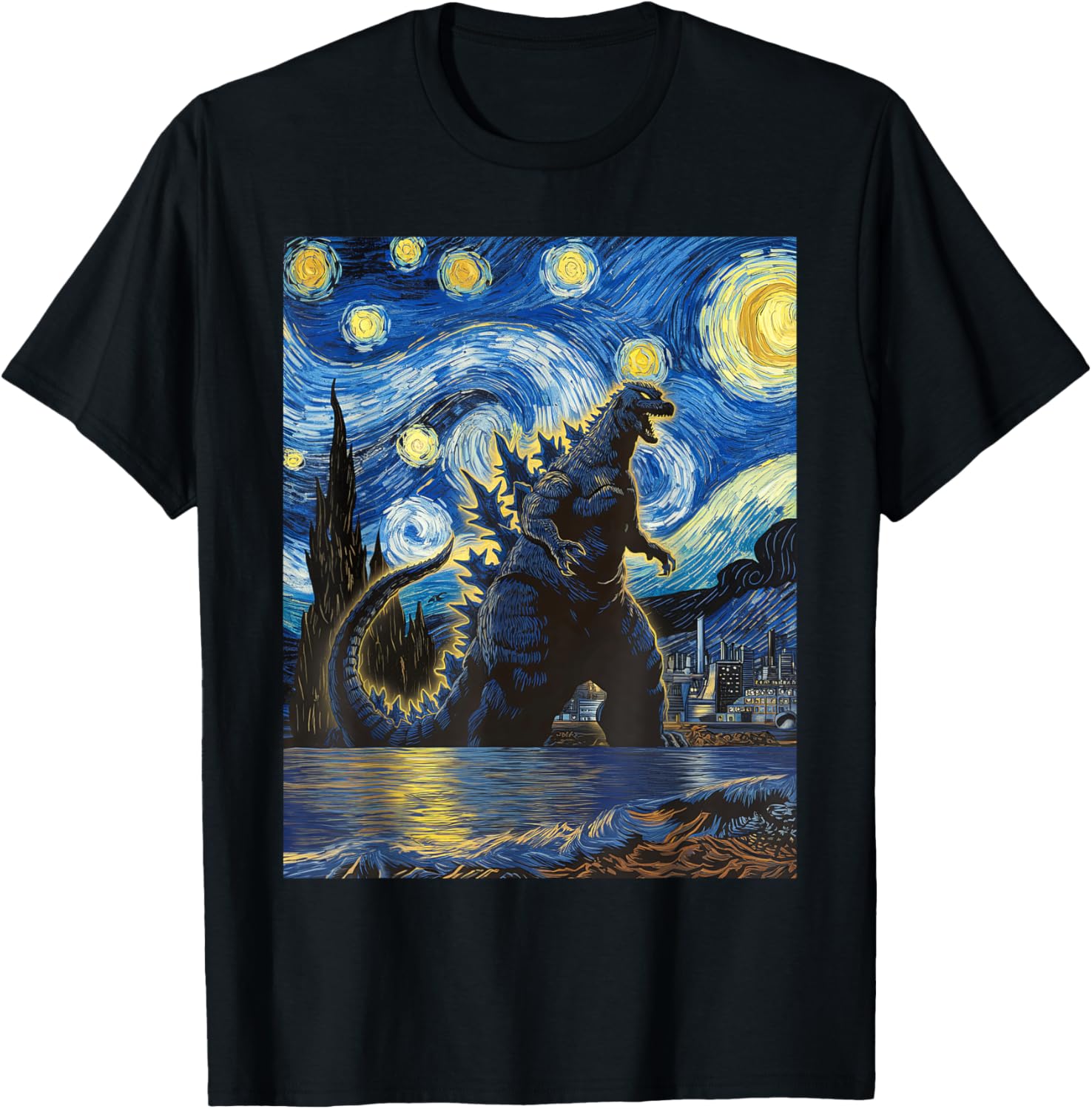 Vintage Japanese Monster Kaiju in Van Gogh Starry Night Art